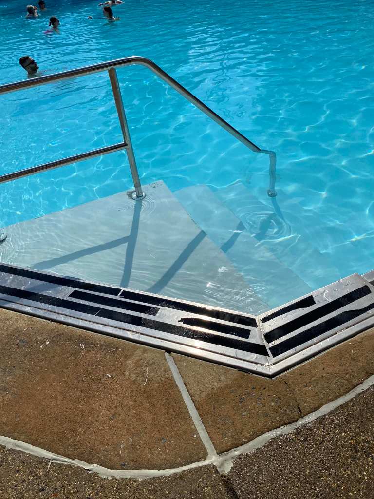 The pool goes up to eight feet, so you can actually dive in the deep end (which serves as an “adult end” during the day, provided there are enough guards to open it, I am told by a Roxborough-resident swimmer, who’s swum here their whole life). I was here for adult swim, though, so there was no rope separating shallow from deep, and people could swim laps freely.