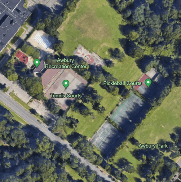 Although this is just a couple blocks away from Lonnie Young Pool, the vibe is totally different. Lonnie Young is a more urban landscape, with cement and street-level facilities. Awbury is more like a countrified park vibe with lots of greenery, an off-street parking lot and plenty of trees.