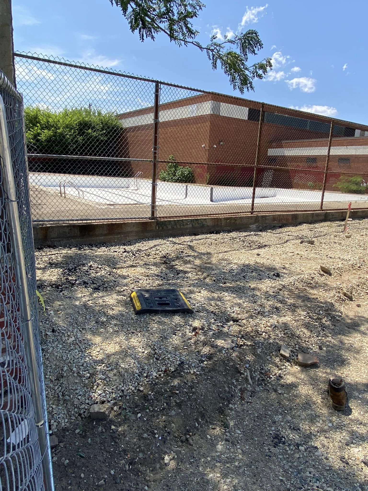 Lots of construction going on (though no signage indicating plans or anything else), similar transitional state to Vare Pool with an L-shape that looks like 2 to 5 feet with ladders, but it’s hard to tell since I can’t see the side of the pool directly adjacent to the wall.
