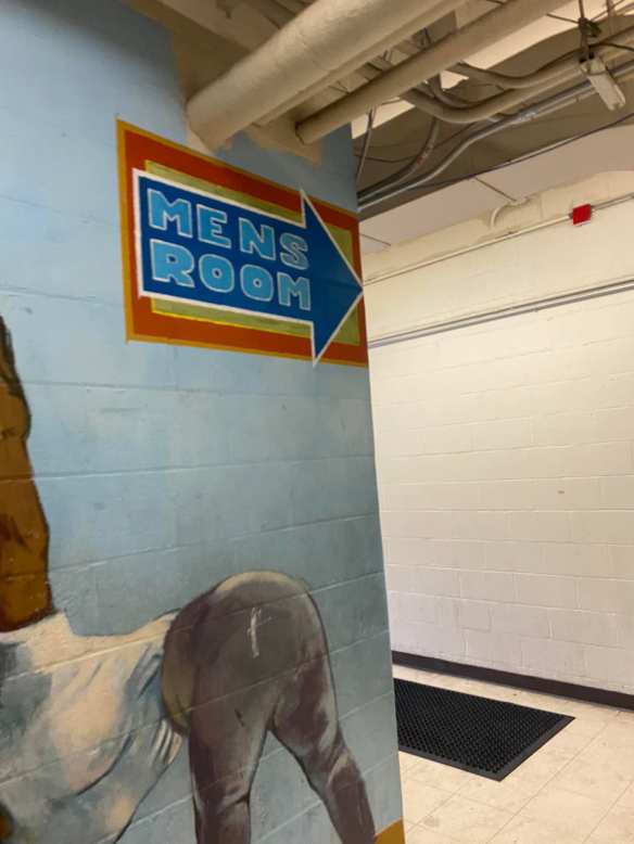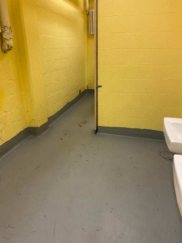Men’s and women’s rooms with stalls in air conditioned rec center