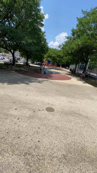 Once I backtracked behind the bikes, I saw the splashing of small children getting wet in the playground’s water garden. They waved at me as I walked past them in search of the pool, which is located a good 15 feet below ground level from the main playground.