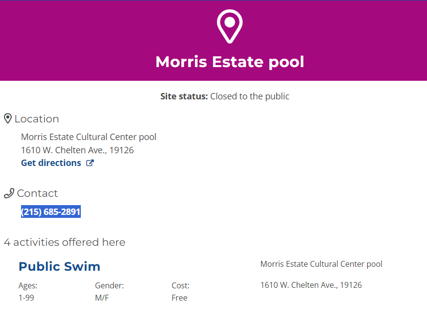 Morris Estate Pool is at 1610 W. Chelten Ave., 19126.