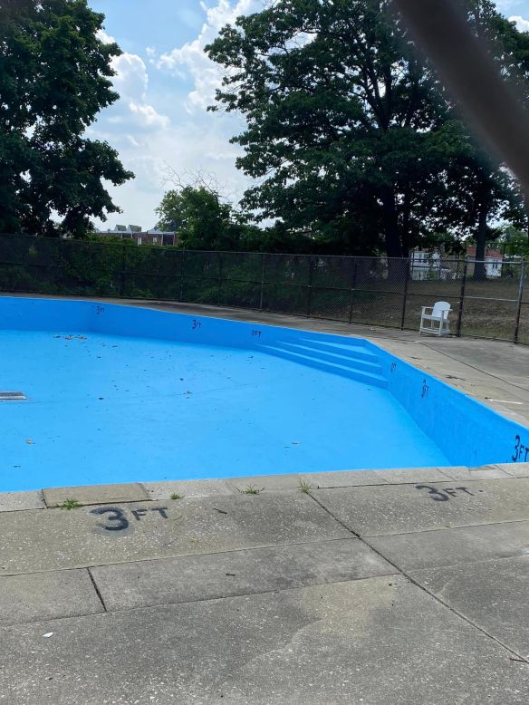 The pool at this recreation center in Oak Lane was dry today, although they were scheduled to be open yesterday.