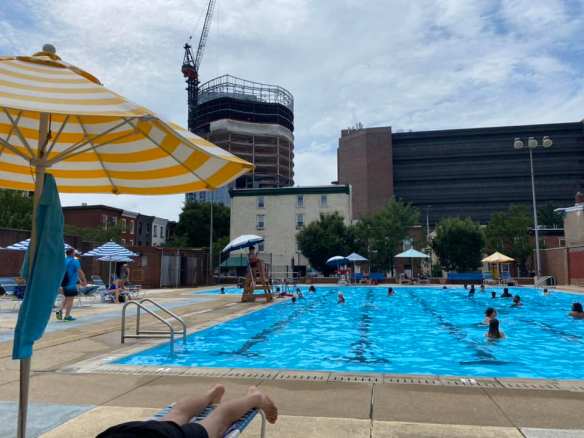 Some folks brought lunch and we’re eating poolside while reading books/sunbathing