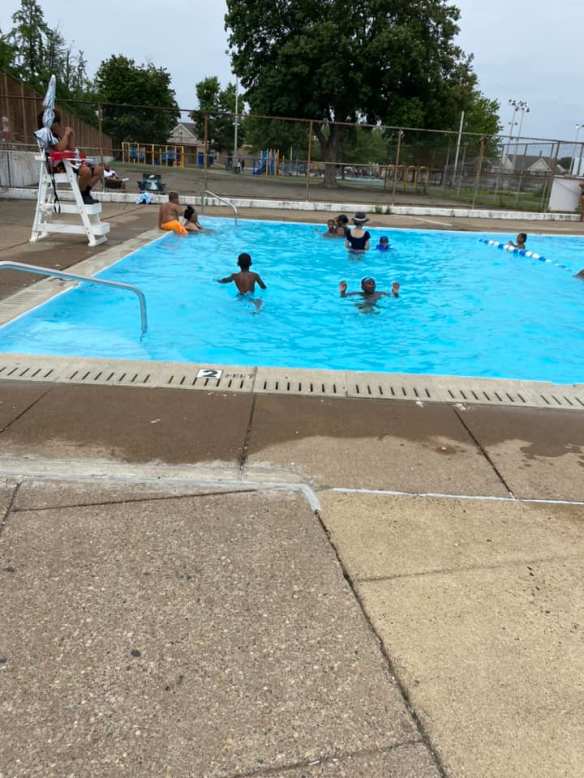 Water temperature was mild and even with half the pool closed there is still plenty of space to party  during this Saturday afternoon free swim.
