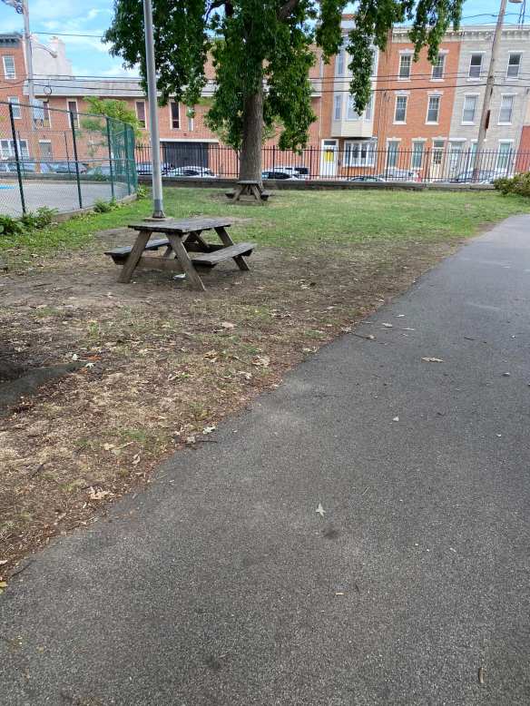 The small picnic area outside the pool was bustling with a crowd of older adults playing games. The shady playground was empty (the entrance from Christian Street is permanently locked, which is how I overlooked the pool’s existence for years; you need to enter through the park at 13th and Carpenter).