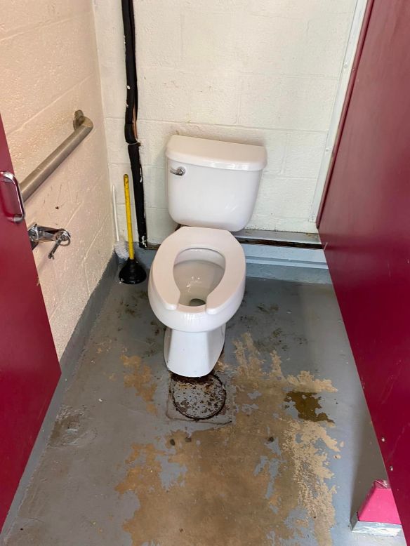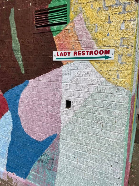 Full sun, relatively warm water. A very cute, compact, not-quite-rectangular pool with four ladders, surrounded by urban sports fields and a colorful rec center with a “Lady restroom” and “Men restroom” to change and use toilet.