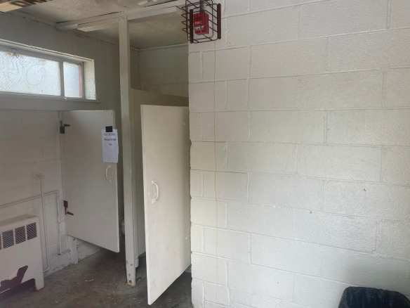 No steps are required to enter the pool deck, but the wheelchair lift is still broken due to a bad battery — which seems to be the theme, whether here or at Bridesburg, Kelly, Mander and other places that have chair lifts but cannot use them.