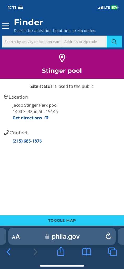 Jacob Stinger Park Pool is at 1400 S. 32nd St., 19146
