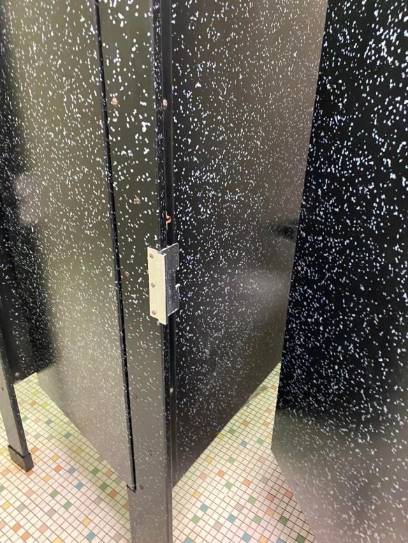 Chaging and toilet space is in the rec center building about 100 yards from the pool entrance. Non-accessible restrooms are cleaned regularly and I bumped into the person who is doing the cleaning who assured me that they were just trying to keep the room clean.