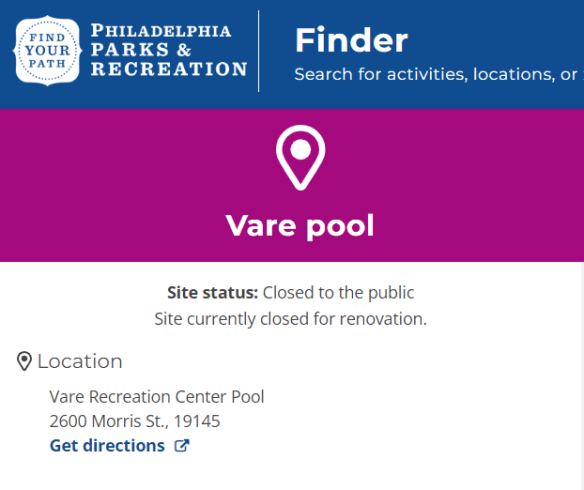 Vare Recreation Center Pool is at 2600 Morris St., 19145